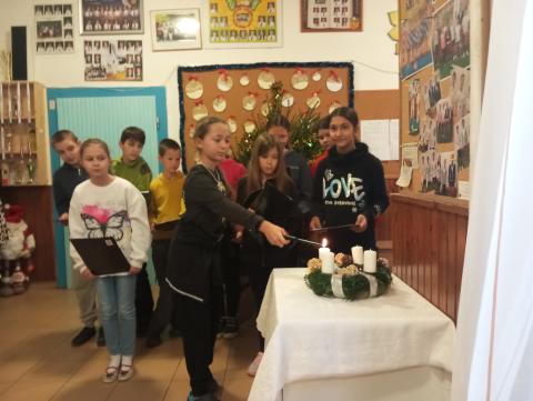 Az ötödikesek kedves, meghitt műsorával és az első gyertyagyújtással kezdetét vette az „Adventtől karácsonyig” projektünk.