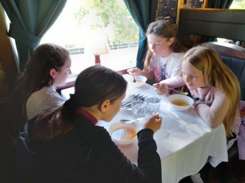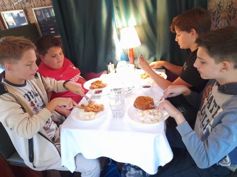 Vincze Enikő tanárnő és hetedikes osztálya a nyertes pályázat keretében ingyenes múzeumi tárlatvezetést, valamint egy finom, meleg ebédet is kaptak a hangulatos Vagon étteremben.